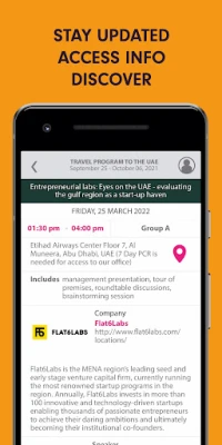 Join virtual meetings at the touch of a button, separate your itinerary depending on your group specification and learn about speakers and company bios before your visit. Not only this but you can rate every single session and event from your trip using a simple 5-star system. Leave feedback to accompany your rating to take control of your program. The app works offline, so no need to worry about having data when abroad and on the ground. You can access local emergency contacts at the touch of a button as well as order trip extensions and additional content via the app.
